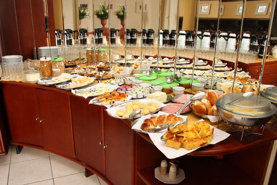 We don’t have any information about restaurants at Centerminas Palace Hotel, please check with them when booking.
