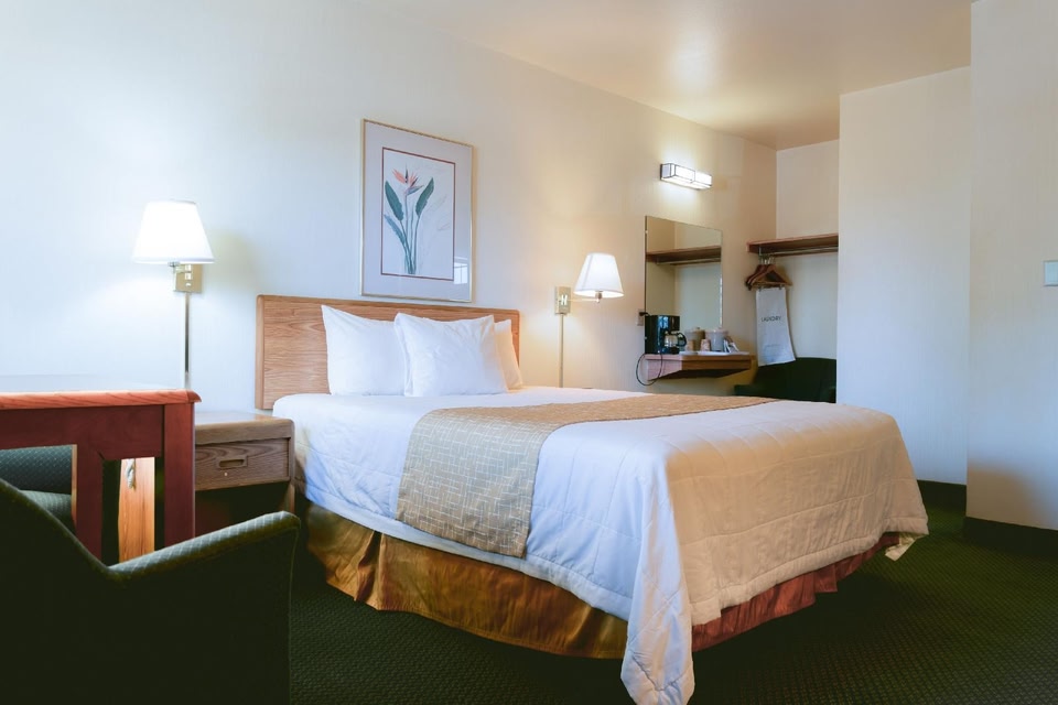 Riverfront Inn Roseburg profite d'un emplacement privilégié en plein cœur de Roseburg, à moins de 5 minutes en voiture de Harvard Medical Park et Parc Stewart. Ce motel se trouve à 1,3 km de Happy Tails Dog Park et à 2,9 km de Umpqua Valley Tennis Center. La détente avant tout ! Profitez des nombreuses options de loisirs disponibles dans l'hébergement, notamment une piscine extérieure, ou admirez la vue qui vous est offerte depuis une terrasse et un jardin. Parmi les services et équipements offerts par ce motel vous trouvez également l'accès Wi-Fi à Internet gratuit, un service d'organisation de mariages et une télévision dans l'espace commun. Un petit déjeuner continental gratuit est servi tous les jours de 04 h 00 à 10 h 00. Les équipements et services proposés incluent l'accès à internet gratuit à Internet, un service de départ express et des journaux gratuits dans le hall. Un parking gratuit est disponible dans l'enceinte de l'hébergement. Les 40 chambres climatisées de l'hébergement vous invitent à la détente et comprennent un réfrigérateur et un micro-ondes. Un accès au réseau Internet Wi-Fi et câblé est offert gratuitement, alors qu'une télévision à écran plat avec chaînes par câble vous réserve des moments de détente. Les salles de bain comprennent une baignoire et un sèche-cheveux. Les équipements et services offerts par l'hébergement comprennent un coffre-fort et des journaux gratuits. Le service d'entretien est assuré tous les jours.