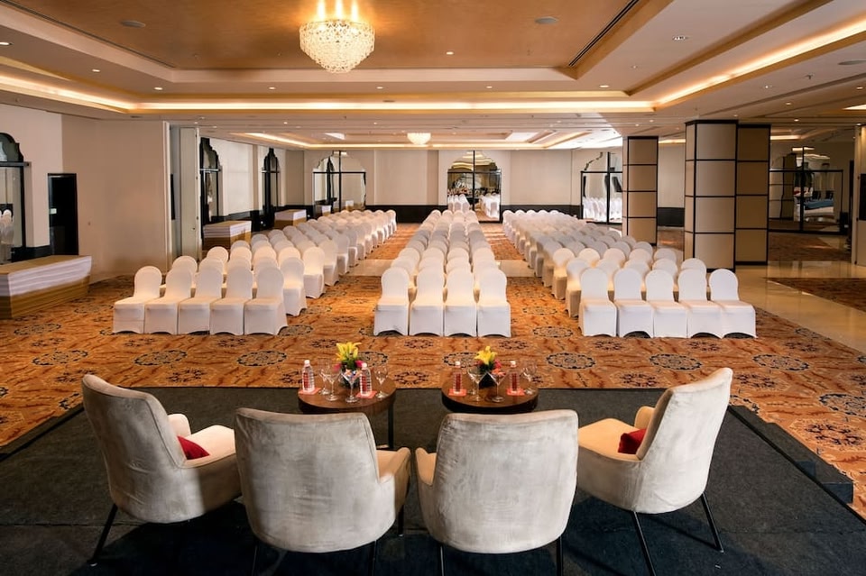 Un soggiorno in Welcomhotel by ITC Hotels, Dwarka, New Delhi ti porta nel cuore di Nuova Delhi, a 10 minuti di auto da Yashobhoomi Convention Centre e da Tempio di Iskcon. Questo hotel di lusso dista 10,5 km da Centro commerciale Pacific Mall e 13,4 km da Worldmark. Approfitta dei servizi ricreativi disponibili, che includono un centro fitness e una piscina all'aperto. Questo hotel in stile Art Déco propone, inoltre, il Wi-Fi gratuito, servizi di concierge e negozi di articoli da regalo/edicole. Gli ospiti potranno utilizzare la navetta locale gratuita che opera all'interno di 12.00 km. Puoi gustare gustose specialità da Pavilion 75, uno dei 2 ristoranti ristoranti presso un hotel, specializzato in cucina internazionale; oppure, resta in stanza e approfittarne per rilassarti, visto che c'è un servizio in camera con orario limitato. Altrimenti puoi assaggiare gli stuzzichini preparati al bar/caffetteria. Concludi la giornata in bellezza con il tuo drink preferito! Presso questa struttura troverai un bar/lounge davvero fantastico. La colazione a buffet è disponibile a pagamento tutti i giorni dalle ore 07:00 alle ore 10:30. Potrai usufruire di accesso gratuito a Internet via cavo, un business center aperto 24 ore su 24 e servizio auto o limousine. Stai pianificando un evento a Nuova Delhi? Presso un hotel avrai a disposizione 2137 metri quadrati di spazio con un'area per conferenze e una sala riunioni. Potrai usufruire di una navetta da e per l'aeroporto 24 ore su 24 a pagamento; inoltre, in loco troverai il un parcheggio con servizio di ritiro e riconsegna auto gratuito. Rilassati in una delle 392 camere con arredamento individuale della struttura, complete di minibar e TV LCD. Riposati su un comodo letto con materasso Select Comfort, completo di copriletto in piuma e biancheria da letto di alta qualità. La connessione Internet inclusa, wireless e via cavo, ti consente di restare in contatto con il mondo, mentre la TV con canali via satellite è l'ideale per concedersi un po' di svago. Il bagno in camera dispone di doccia, soffione a pioggia e set di cortesia gratuiti.
