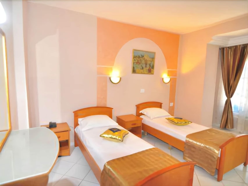 Hôtel Les Palmes d'Or si trova a Houmt Souk e vanta una posizione strategica nel centro della città e vicino alla spiaggia. Non rinunciare a un salto a Parco Divertimenti Djerba Explore Park. Dì addio alla routine di tutti i giorni e dedicati ad attività all'aperto come jogging e immersioni subacquee. Hotel con colazione inclusa nel prezzo, a pochi passi da Museo del Patrimonio Tradizionale di DjerbaIn questo hotel avrai a disposizione un forno a microonde nell'area comune, un frigorifero nell'area comune e servizi di concierge. Non mancano gli extra a costo zero come la colazione a buffet gratuita, il Wi-Fi gratuito nelle aree comuni e un parcheggio gratuito. Altri servizi includono servizio di lavanderia e lavaggio a secco, una reception aperta 24 ore su 24 e supporto per la prenotazione di escursioni e biglietti. Hôtel Les Palmes d'Or offre 23 sistemazioni con aria condizionata, acqua minerale gratuita e set di cortesia gratuiti. Tutte le camere sono dotate di balcone o patio. I letti con materassi Select Comfort sono preparati con lenzuola Frette e copriletto in piuma. È disponibile un'ampia scelta di cuscini. La TV a schermo piatto con canali via cavo. I bagni sono dotati di vasca o doccia. Durante il tuo soggiorno puoi navigare su Internet utilizzando la connessione wireless gratuita. Sono disponibili scrivania e telefono. Su richiesta sono disponibili ferro/asse da stiro e asciugacapelli. Le pulizie vengono eseguite tutti i giorni. Le attività ricreative elencate di seguito sono disponibili in loco o nelle vicinanze. È possibile che siano a pagamento.