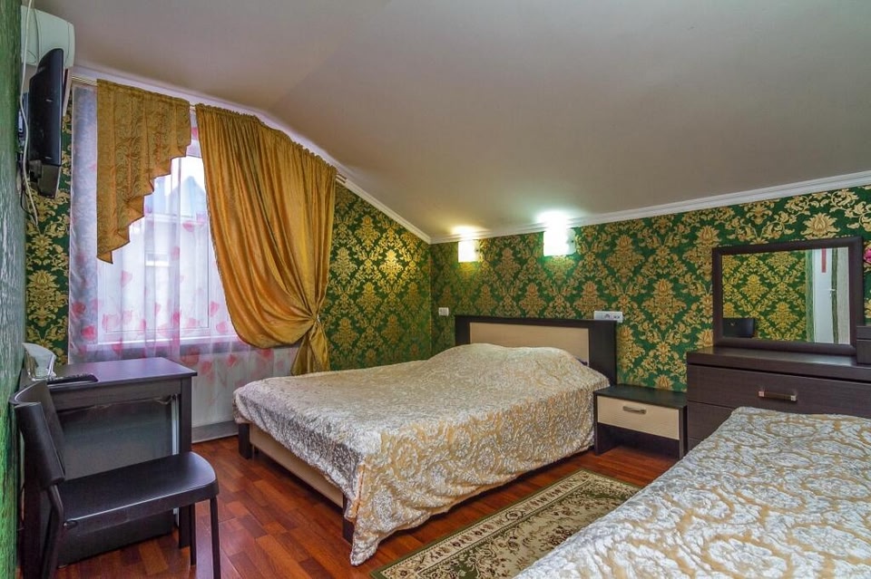 En choisissant Hotel Natali, vous serez au cœur de Krasnodar, à 5 min en voiture de Tour hyperbolique Choukhov et à 5 min de Fontaine à jets. Cet hôtel se trouve à 4,8 km de Centre commercial de Krasnodar et à 7 km de Salle de concert du chœur Kuban Cossack. La détente avant tout ! Profitez des nombreuses options de loisirs disponibles dans l'hébergement, notamment une piscine extérieure en saison, ou admirez la vue qui vous est offerte depuis un jardin. Parmi les équipements et services offerts par cet hôtel vous trouvez également l'accès Wi-Fi à Internet gratuit, une télévision dans l'espace commun et un service d'assistance pour les visites touristiques ou l'achat de billets. Vous êtes gourmand ? cet hôtel vous propose un café pour reprendre quelques forces et si vous préférez le confort de votre chambre, vous pourrez aussi compter sur un service d'étage 24 h/24 très pratique. Un petit déjeuner continental est servi tous les jours moyennant un supplément. Les équipements et services proposés incluent un poste informatique, un service d'arrivée express et un service de départ express. Les espaces événements de cet hôtel comprennent un espace de conférence et une salle de réunion. En échange d'un supplément, l'hébergement propose une navette vers et depuis l'aéroport (24 h/24) et un parking gratuit se trouve dans l'enceinte de l'hébergement. Les 20 chambres climatisées de l'hébergement vous invitent à la détente et comprennent une télévision à écran plasma. L'accès Wi-Fi à Internet gratuit vous permet de rester en contact avec le reste du monde et votre divertissement est assuré par des chaînes numériques. Une salle de bain privée avec une douche est à votre disposition. Vous y trouvez également des articles de toilette gratuits et un sèche-cheveux. Les équipements et services offerts par l'hébergement comprennent un coffre-fort et un bureau. Le service d'entretien est assuré tous les jours.
